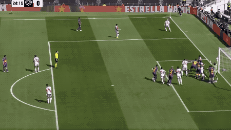 第68分钟,巴萨利用定位球连续攻门,奥尔莫不看人的情况下似传似射,两队所有球员都目送皮球出了底线。