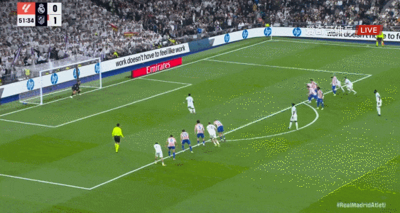 下半场皇马进攻有起色,维尼修斯点射,巴尔韦德抢断后推射得手;替补出场的莫利纳轰入超级世界波扳平;维尼修斯梅开二度再度反超;巴尔韦德染红被罚下;小蜘蛛远射中柱。最终皇马3-2逆转马竞。