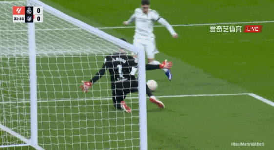 第31分钟,巴尔韦德插入禁区横传,皇马中路包抄慢了一些。