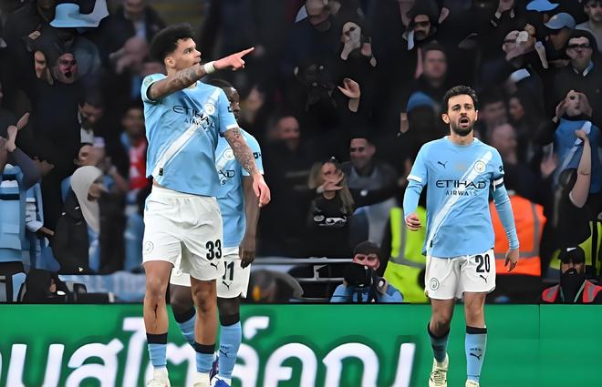 仅仅4分钟后,努内斯右路送出手术刀式挑传,奥赖利再次跃起头球攻门,皮球应声入网,曼城2-0锁定胜势!