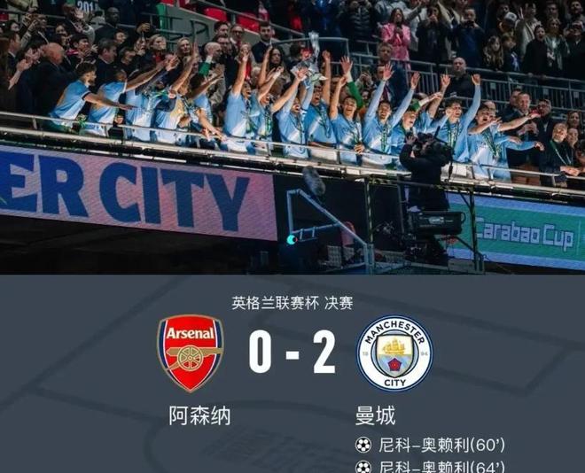 央视网:《奥赖利梅开二度 曼城战胜阿森纳收获联赛杯冠军》2026年3月23日新浪新闻:《赛季首冠!曼城2-0阿森纳联赛杯夺冠 奥赖利头球双响凯帕脱手送礼》2026年3月23日光明网:《曼城夺英联杯冠军》2026年3月23日体坛网:《【联赛杯】曼城2-0阿森纳夺冠,凯帕失误,奥赖利双响》2026年3月23日抖音短视频:《@新爱体育——3分钟2球!维尼修斯点射扳平,随后巴尔韦德前场抢断后劲射破门,助皇马2-1反超马竞》2026年3月23日