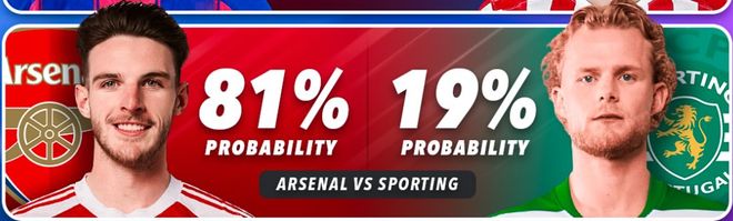 阿森纳(81%)vs 葡萄牙体育(19%),从数据看,阿森纳晋级概率最高,达到81%。枪手本赛季欧冠表现稳定,联赛阶段8战全胜,1/8决赛虽然被勒沃库森逼平,但回到主场后依然掌控局面。葡萄牙体育虽有主场之利,但想要翻盘难度极大。估计这会是阿尔特塔训练的机会,阿森纳必晋级的。
