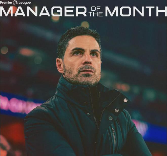 官方:阿尔特塔被提名为了英超3月份最佳主帅候选。