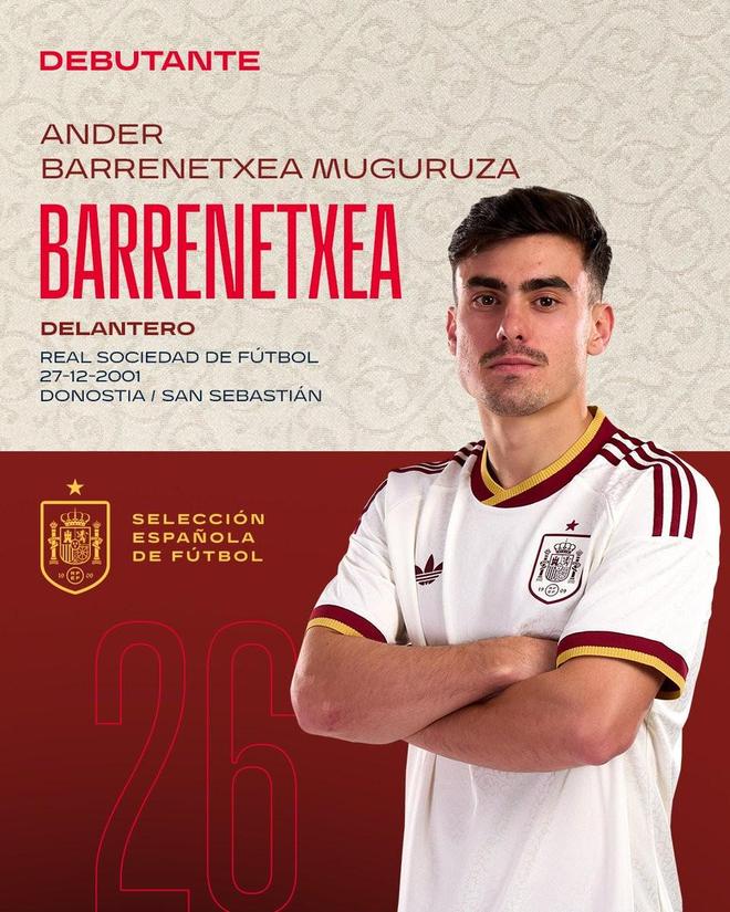 此役对阵埃及队,巴雷内切亚首发出战,这位24岁的皇家社会前锋迎来西班牙国家队生涯首秀。