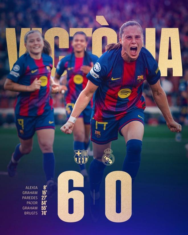 在北京时间4月3日凌晨结束的女足欧冠1/4决赛次回合的比赛中,巴萨女足在主场6-0横扫皇马女足,以两回合总比分12-2的表现,强势晋级半决赛。