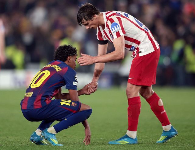 即便是马竞球员,也上前安慰伤心的亚马尔。普比尔、穆索、勒诺尔芒……马竞球员纷纷上前,安慰亚马尔。