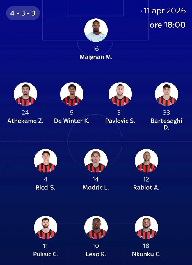 北京时间4月12日零点,意甲第32轮比赛,米兰将在圣西罗迎战乌迪内斯。本场比赛之前,意大利天空体育对红黑军团首发阵容进行了预测。