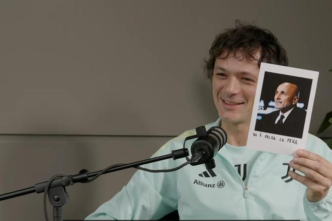 主教练,感谢你让我们沉浸在这份情感之中。我现在动力十足、斗志昂扬。在结束之前,我占用最后一分钟。《闲谈》有一个传统仪式——照片环节。通常我们会请嘉宾带一张年轻时的照片,而我们为你选择的,是你在安联球场的“青春印记”:那是你第一次身穿西装、打着领带,作为尤文图斯主教练走进这座球场参加上任新闻发布会的照片。看这儿。如今几个月过去了,如果看到这张照片,你想对上任第一天的卢西亚诺-斯帕莱蒂说些什么?愿意写在下面吗?