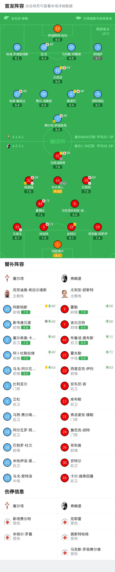 第32分钟,马肯戈助攻,马塔诺维奇世界波破门,塞尔塔0-1弗赖堡
