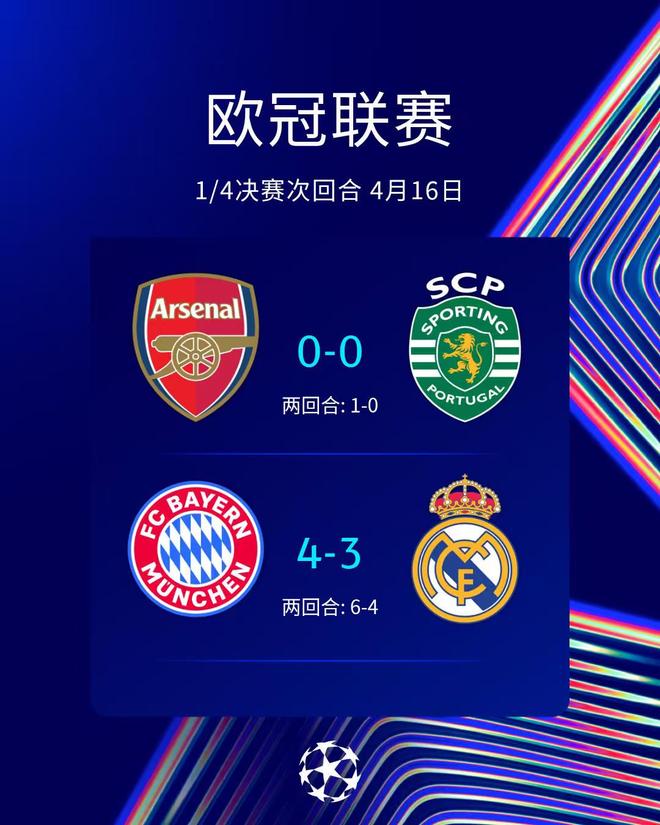 至此欧冠四强全部产生,分别是巴黎圣日耳曼、拜仁慕尼黑、马德里竞技、阿森纳。