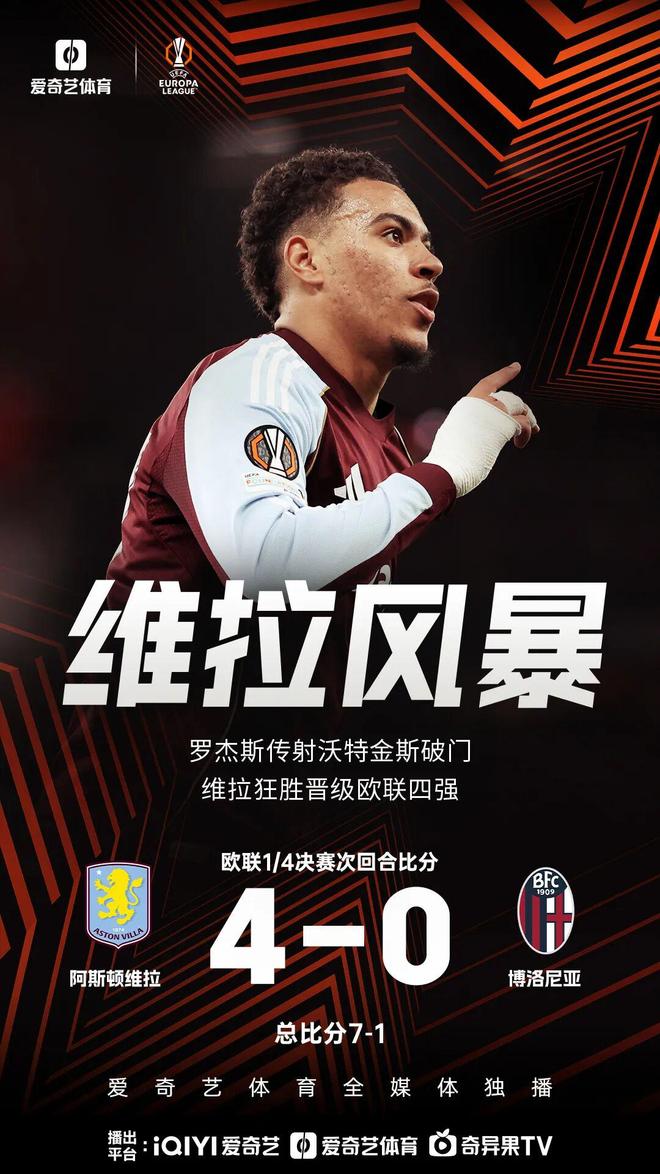 诺丁汉森林以2-1的总比分小胜波尔图,成功晋级;阿斯顿维拉则是总比分7-1大胜博洛尼亚;两支英超球队会师半决赛。