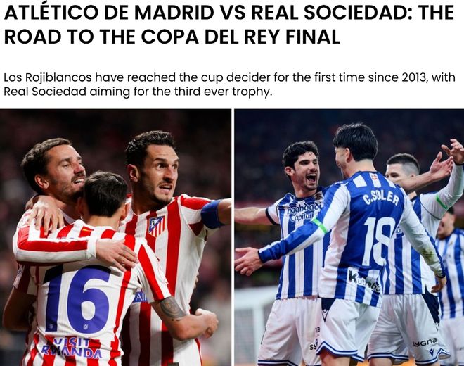 对于马德里竞技和皇家社会来说,本赛季通往国王杯决赛的道路都绝非一帆风顺,两队都经过了一番艰苦的战斗才能获得梦寐以求的决赛席位。