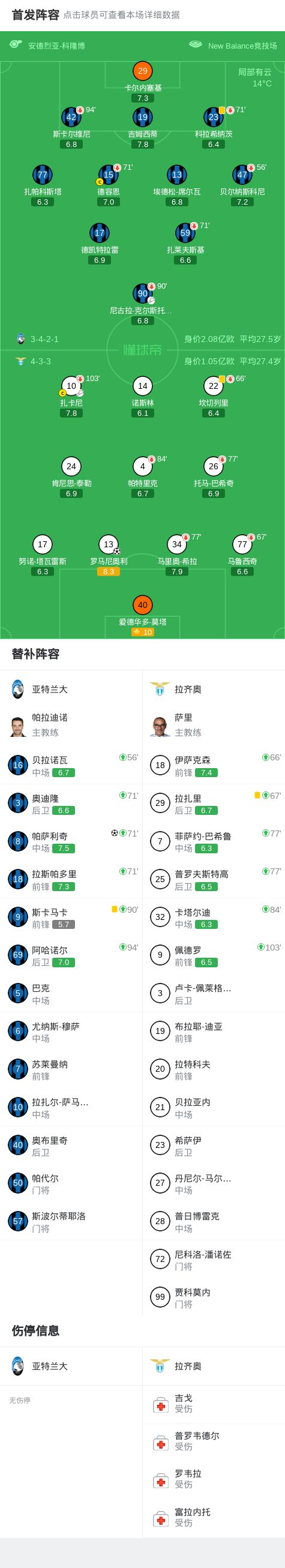 第86分钟,克尔斯托维奇助攻,帕萨利奇推射破门,亚特兰大1-1拉齐奥