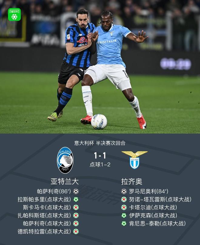 点球大战拉齐奥两回合5-4亚特兰大闯进决赛,莫塔连扑四点